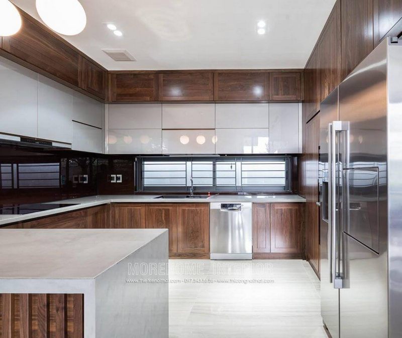 Công việc làm bàn đá bếp nhân tạo màu trắng cho biệt thự Hà Tĩnh đã được thi công.